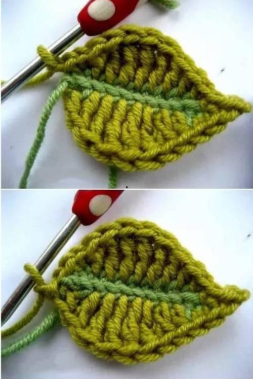 3. 钩出叶子主体:继续钩针,使叶子逐渐变厚,形成主体。