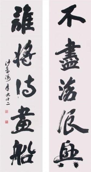 2. 行书:沙孟海的行书,流畅自然,笔势连贯,给人一种行云流水的感觉。他的行书作品,如《行书七言联》,笔力遒劲,韵味十足。